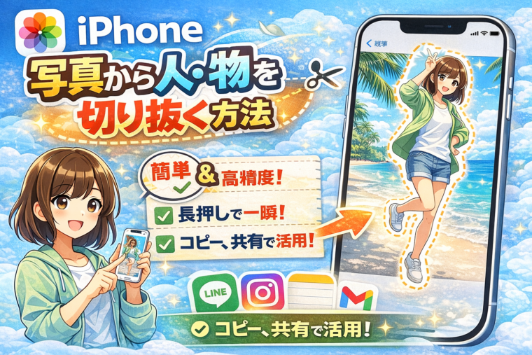 iPhoneでは、アプリを使わなくても標準機能だけで写真から人物や物を簡単に切り抜くことができます。特に最近のiOSでは精度がかなり高く、背景を一瞬で削除できるため、SNS投稿や資料作成、画像編集など幅広いシーンで活用されています。
